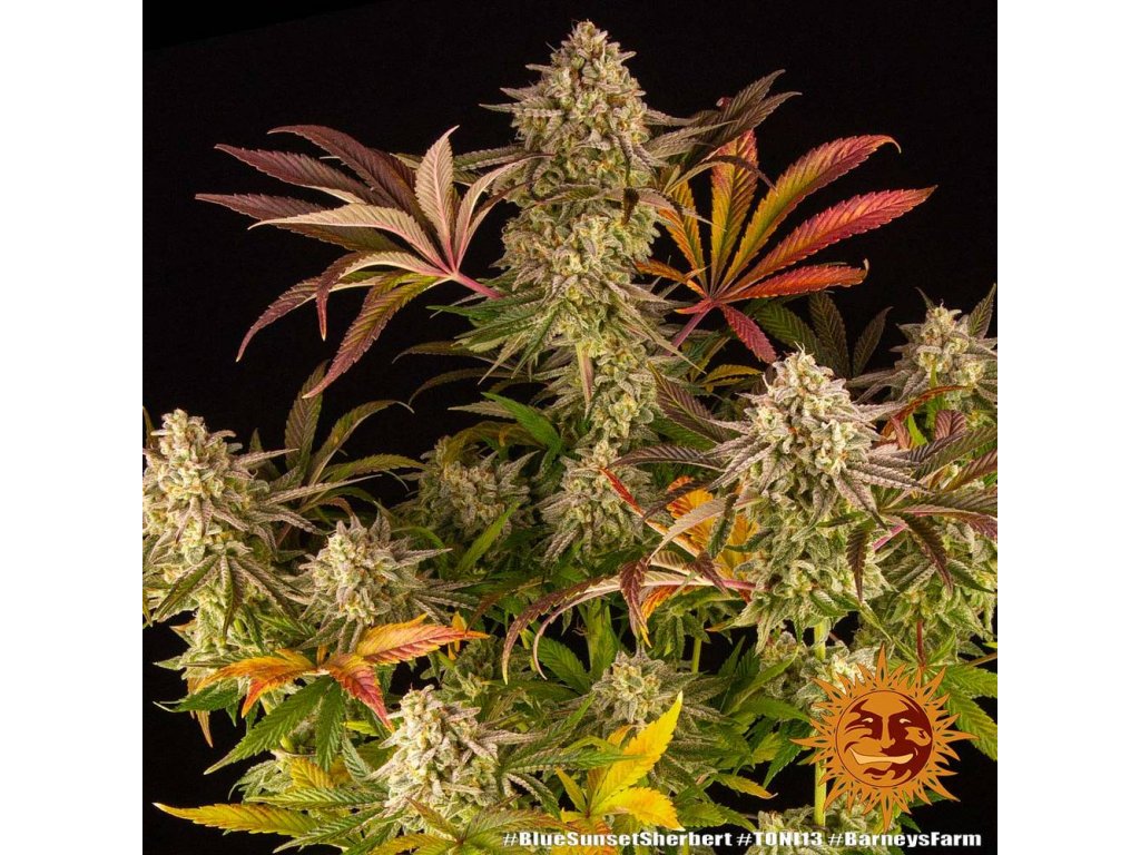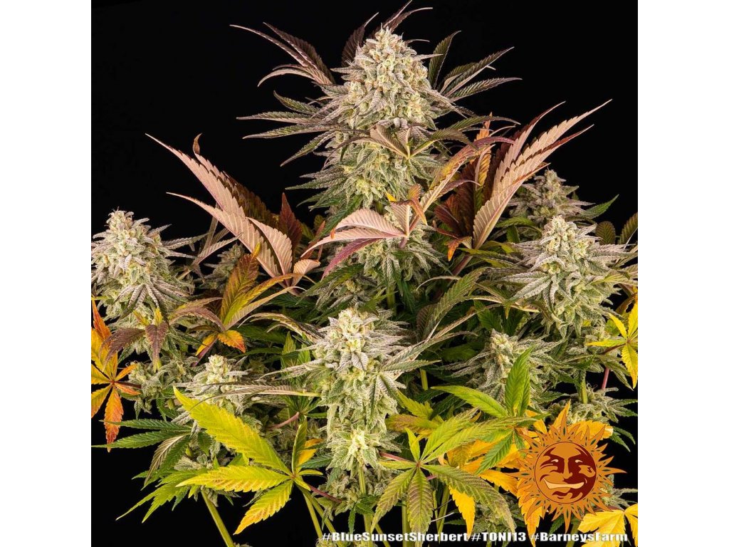 Blue Sunset Sherbert - Barney´s Farm –Kmeň s prevahou v Indice, ktorý poskytuje masívne výnosy bez toho, aby bol nezvládnuteľný; s množstvom bočných konárov, z ktorých každý je schopný podporovať najťažšie colas. Superrýchle kvitnutie iba za 59 až 63 dní a produkcia 650-700 g/m2. Kompaktná postava, nadpriemerná produkcia trichrómu a dorastanie v interiéri okolo 80 cm, je skutočnou lahôdkou, vonku môže dosiahnuť ohromujúce dva metre plus a zožne až 1 kg na rastlinu. BLUE SUNSET SHERBERT ™ dokončuje počas svojich posledných dní oslnivý displej, ktorý predstavuje magickú premenu a vytvára hypnotizujúci kaleidoskop listov exotickej farby, jasne oranžové chĺpky, lepené živicou pokrývajúcou pevne tvarované púčiky, trblietajúce sa matnými trichómami a produkujúce hladiny THC pod 28%. V týchto nádherných vzorkách možno zistiť náznaky Purple Punch a Sherbet Dib Dab. Jeho vysoké hladiny terpénu vrátane limonénu, humulénu, terpinolénu zaisťujú dobrú liečbu, zvyšujú delikátnu sladkú vôňu, citrusovú kôru a vôňu sladkých bobúľ, ktoré táto rastlina prináša. BLUE SUNSET SHERBERT ™ omamne silné účinky kombinujúce to najlepšie z oboch svetov, okamžite povznesená, tvorivá, euforická, sativa-high v kombinácii s vyraďovacím celotelovým upokojujúcim zážitkom! Dokonalý spôsob, ako zakončiť deň.