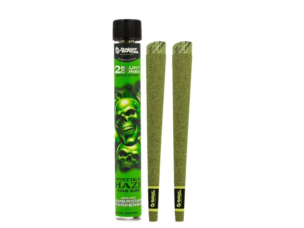 Tieto prémiové blunty G-Rollz sú vyrobené z kvetov pestovaných v USA po extrakcii a napustené terpénmi vyrobenými v Amerike.