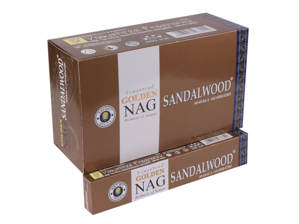 Golden Nag - Sandal Wood 15g je vyrobené zo 100% prírodných materiálov, bez akýchkoľvek chemických prímesí. Obsahuje Plumeriu, známu viac ako Frangipani.