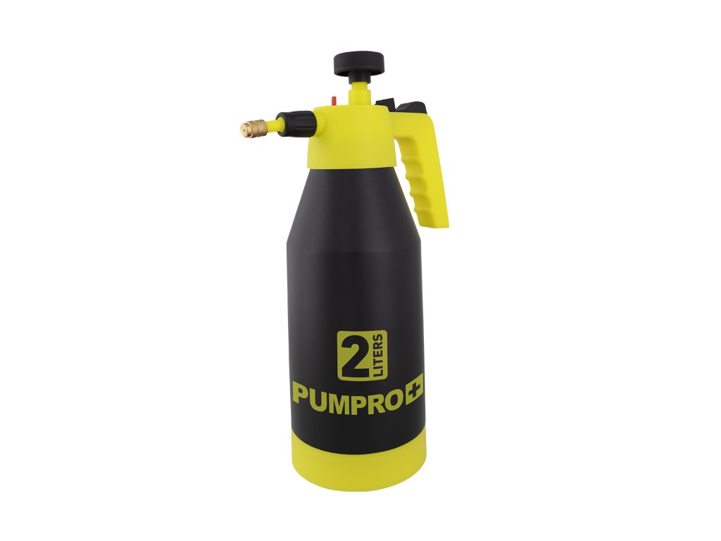 Ručný postrekovač PumPro 2L s mechanickým piestom na natlakovanie kvapaliny vo vnútri nádoby.