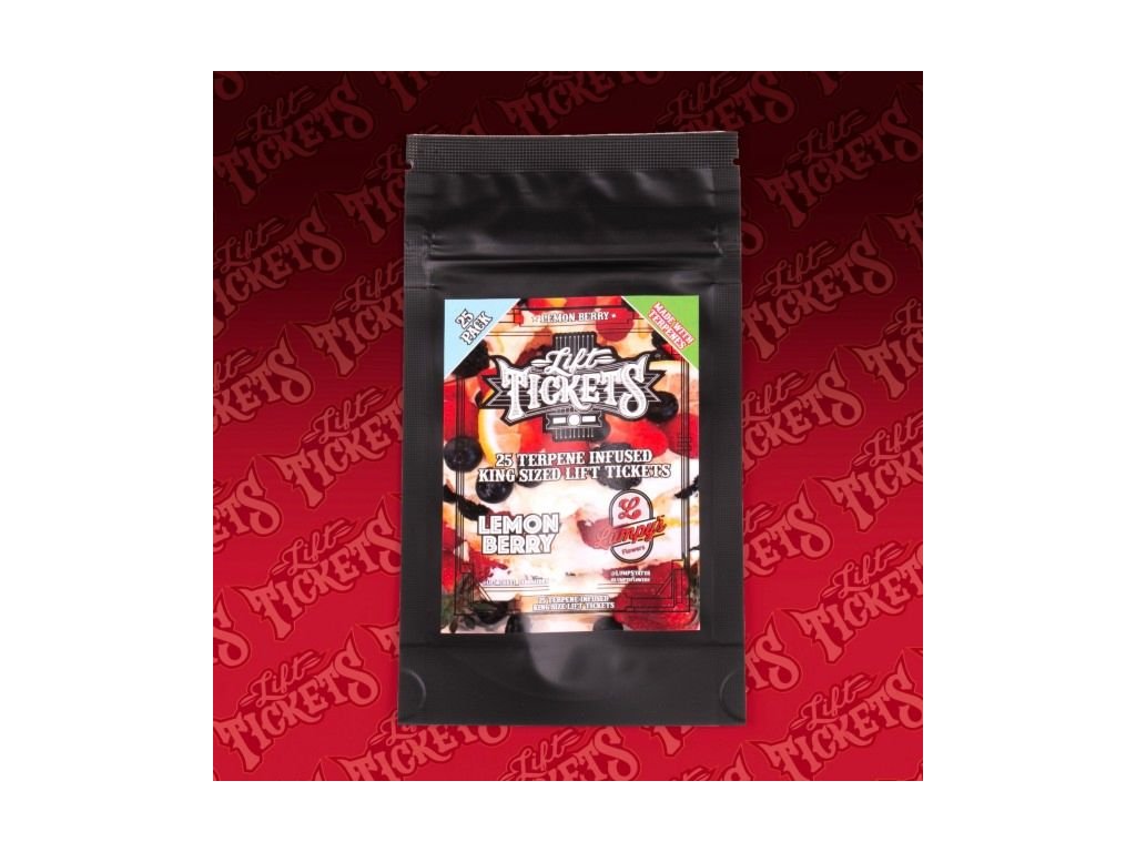 Lift Tickets Lemon Berry - Terpénmi napustené rolovacie papiere dovezené priamo z USA od nikoho iného ako od Lift Ticket Laboratory. Tieto ploché balenia obsahujú 25 nerozbalených papierov KingSized s príchuťou citrónu a čučoriedok pre tých, ktorí si radšej rolujú svoje vlastné na rozdiel od už vopred predmotaných papierikov, ktoré sú momentálne v predaji.