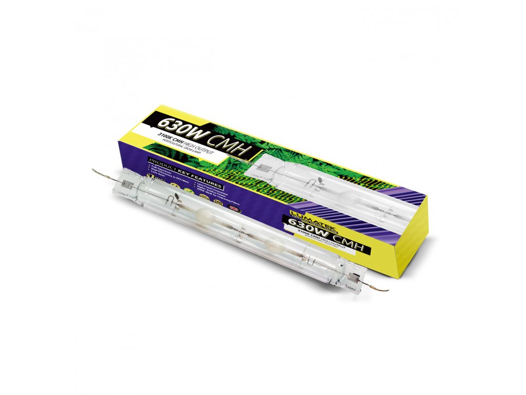 Lampa CMH 630W 3100/4200K 240V, vysokofrekvenčná pulzná lampa s dvojitým koncom (DE), bola skonštruovaná pre použitie s elektronickým predradníkom Lumatek 630W DE CMH. Táto lampa s keramickým halogenidom kovu sa vyrába pomocou vysokokvalitnej technológie keramických oblúkových trubíc a špeciálnej zmesi záhradných plynov, ktorá vytvára optimálny spektrálny výkon pre zdravý rast rastlín. Technológia CMH vytvára vysoko energetické hladiny PAR/PPF s nízkym teplom v celom spektre, ktoré je bližšie k slnečnému žiareniu a produkuje zdravší rast rastlín a vyšší výnos. Vďaka indexu CRI (index vykresľovania farieb)> 90%je CMH ideálny na pestovanie vysokokvalitných produktov a extrakciu esenciálnych olejov. Keramické halogenidové výbojky Lumatek 630W (DE) (tiež známe ako CMH/CDM/LEC) sú k dispozícii vo formáte 4200K denné svetlo a 3100K Agro CCT. Double Ended žiarovky CMH sú stabilnejšie než tradičné žiarovky s kovovým halogenidom (MH) s jedným koncom a to im umožňuje zvýšiť intenzitu svetla a výkon PAR/PPF až o 50% v porovnaní s podobne napájanými štandardnými MH žiarovkami. Keramická oblúková trubica PCA umožňuje žiarovke pracovať pri vyšších vnútorných teplotách, čím sa zvyšuje podanie farieb, výkon a účinnosť. PCA odoláva interakcii s chemikáliami vo vnútri trubice, ktorá stabilizuje chemickú zmes počas životnosti žiarovky, čím zlepšuje konzistenciu farieb a údržbu úrovne PAR/PPF. Technológia pulzného štartu umožňuje rýchlejšie spustenie a skrátenie času, dlhšiu životnosť žiarovky a zvýšenú údržbu lumenov.