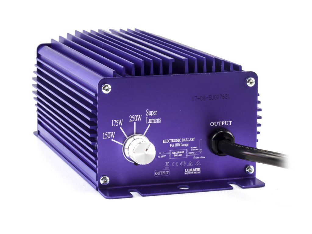 250W elektronický predradník Lumatek - výkonný, nehlučný, produkuje až o 30% lumenov viac než bežné predradníky, nižšia spotreba el. energie, vytvára menej tepla, dlhšiu životnosť výbojok, bezpečný, rýchly štart, plného svetla dosiahne počas jednej minúty (bežné predradníky až 20minut ), vhodný pre HPS / MH