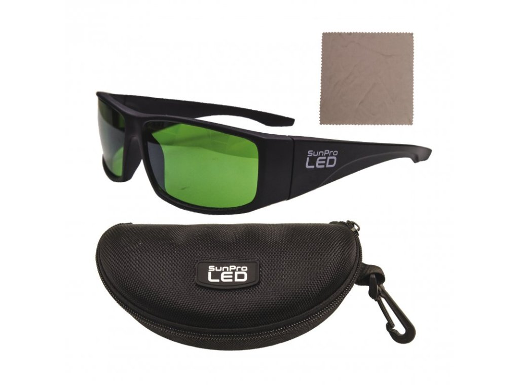 SunPro LED ochranné okuliare pre indoor pestovateľov. Ochrana zraku pred LED žiarením pre lepšie rozpoznanie nežiaducich škodcov alebo chorôb na rastlinách bez nutnosti vypnutia celého svetelného LED systému. Štýlový a súčasne praktický výrobok od firmy SunPro Technology zamedzuje poškodenie očí pred žiarením z LED osvetlenia. Súčasťou balenia je robustný obal na okuliare a látkový obrúsok na čistenie okuliarov.