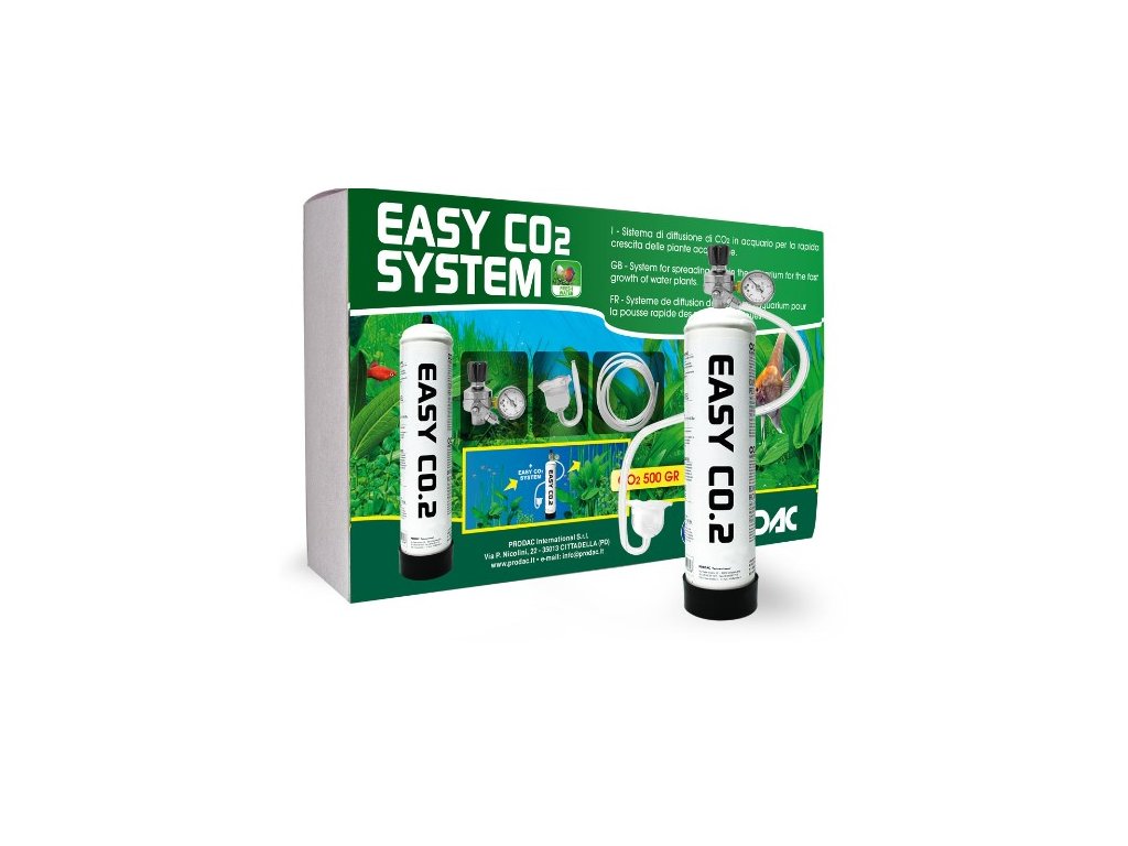 EASY CO2 SYSTEM je dávkovač oxidu uhličitého ideálny pre akváriá do 200 litrov, jednoduché použitie vďaka kompletnej montážnej sade. Rast rastlín, či už vzchádzaných alebo ponorených, je okrem minerálnych látok obsiahnutých v pôde spojený s oxidom uhličitým. Oxid uhličitý pomáha udržiavať stabilnú hodnotu pH v akváriu, v skutočnosti existuje presná súvislosť medzi pH, KH a rozpusteným CO2. Napríklad, ak vezmeme do úvahy pH 7,00 a KH 5, obsah CO2 bude približne 20 mg/l.