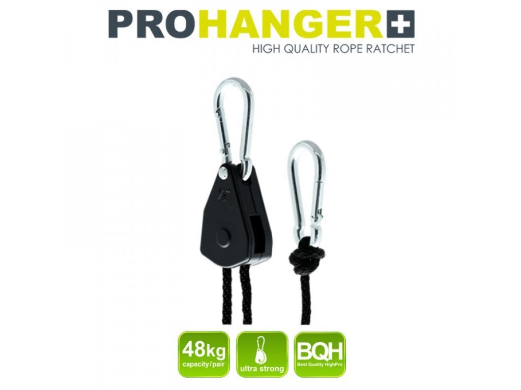 GHP Prohanger XL je 1,5 metrový záves na pacháče, osvetlenie a tienidlá s hmotnosťou do 68kg. Dôležitý doplnok pri inštalácii umelého osvetlenia na pestovanie rastlín. Šikovné a ľahké uchytenie pestovateľských komponentov zaisťujú rozšírené kovové karabíny. Záves umožňuje nastavenie ľubovoľnej vzdialenosti svetla od kvetov a plodov až do výšky 150 cm! Jednoducho geniálny systém kladky so západkou na pevnom povraze, Garden High Pro XL Hanger 68kg, je vyhľadávaným pomocníkom praktických indoor pestovateľov. Prohanger XL je určený predovšetkým na zavesenie pachových filtrov Pro Active a tienidiel Reflector SXII a Reflector Max Light. Záves je však možné využiť pre akékoľvek uchytenie predmetov do hmotnosti 68 kilogramov. Dva kusy v balení.