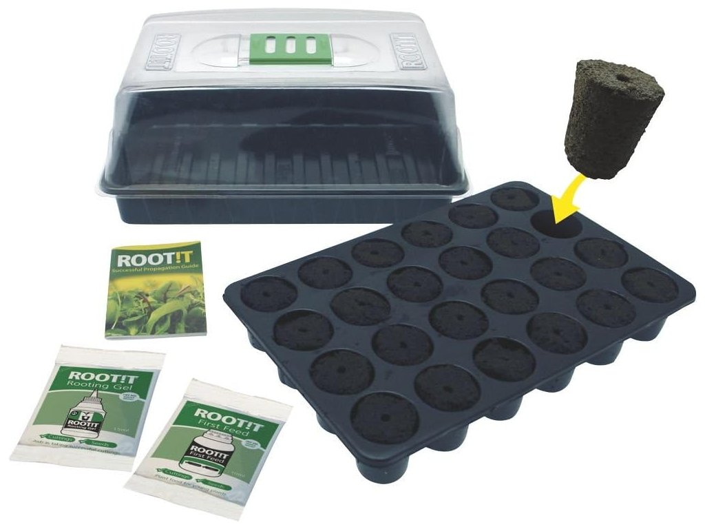 ROOT IT Propagation Kit je sada produktov na klonovanie, ktorá zahŕňa 24 kusov organického média Natural Rooting Sponge a miniskleník ROOT IT.